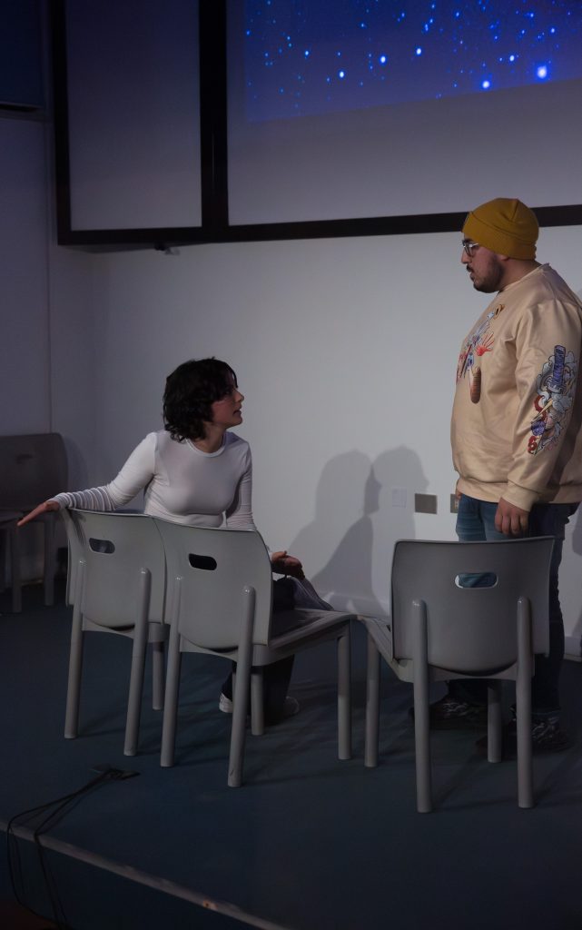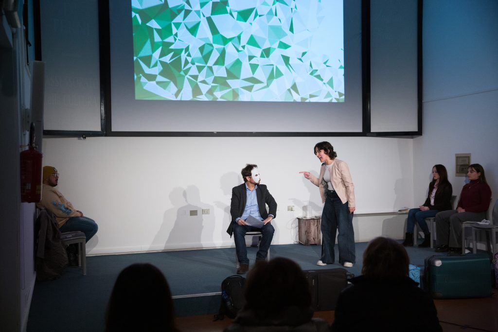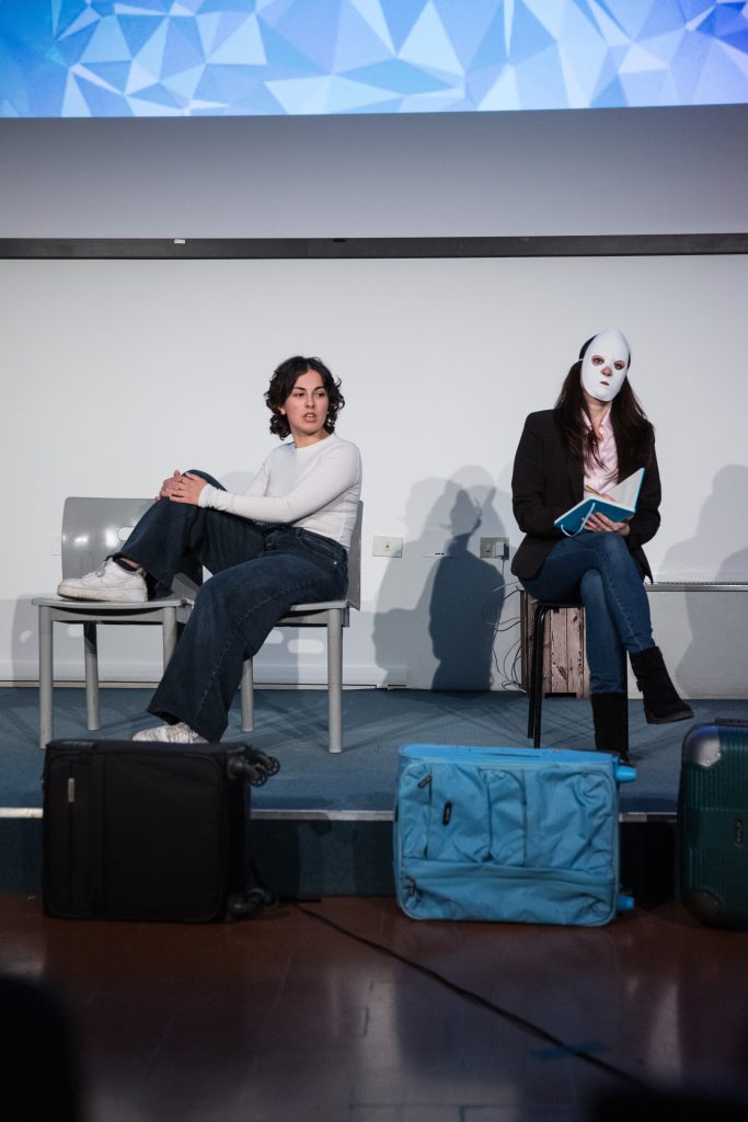 Lo spettacolo andato in scena l’otto gennaio di quest’anno, è stato realizzato dalle ragazze e dai ragazzi partecipanti ai corsi che hanno utilizzato il linguaggio teatrale come strumento di analisi critica, espressione e consapevolezza. La messa in scena è stata preceduta da workshop gratuiti rivolti a studenti universitari e giovani adulti, strutturati in moduli specifici di drammaturgia, scenografia digitale, recitazione e regia. Esperienze che hanno rappresentato momenti di formazione e dialogo, sviluppando competenze artistiche, stimolando una riflessione condivisa sul senso di appartenenza, sulle scelte di partenza e sul diritto di immaginare un futuro possibile nel proprio territorio.